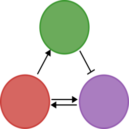 We begin by specifying the reaction-diffusion dynamics via the intuitive syntax developed in Catalyst.jl, which naturally mirrors biochemical feedbacks and interactions.
